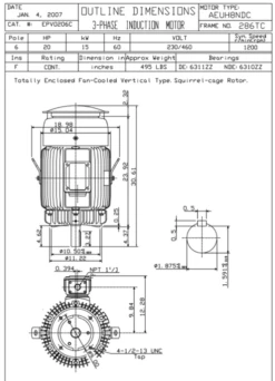 - 7 1/2 hp 1800 RPM, 19.2/9.6 amps 230/460 Volts 60 Hz. Three Phase