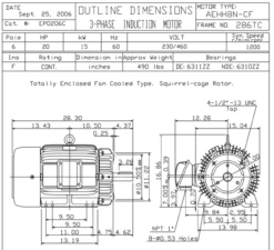 - 1 hp 1800 RPM, 3.0/1.5 amps 208-230/460 Volts 60 Hz. 3-Phase Motor