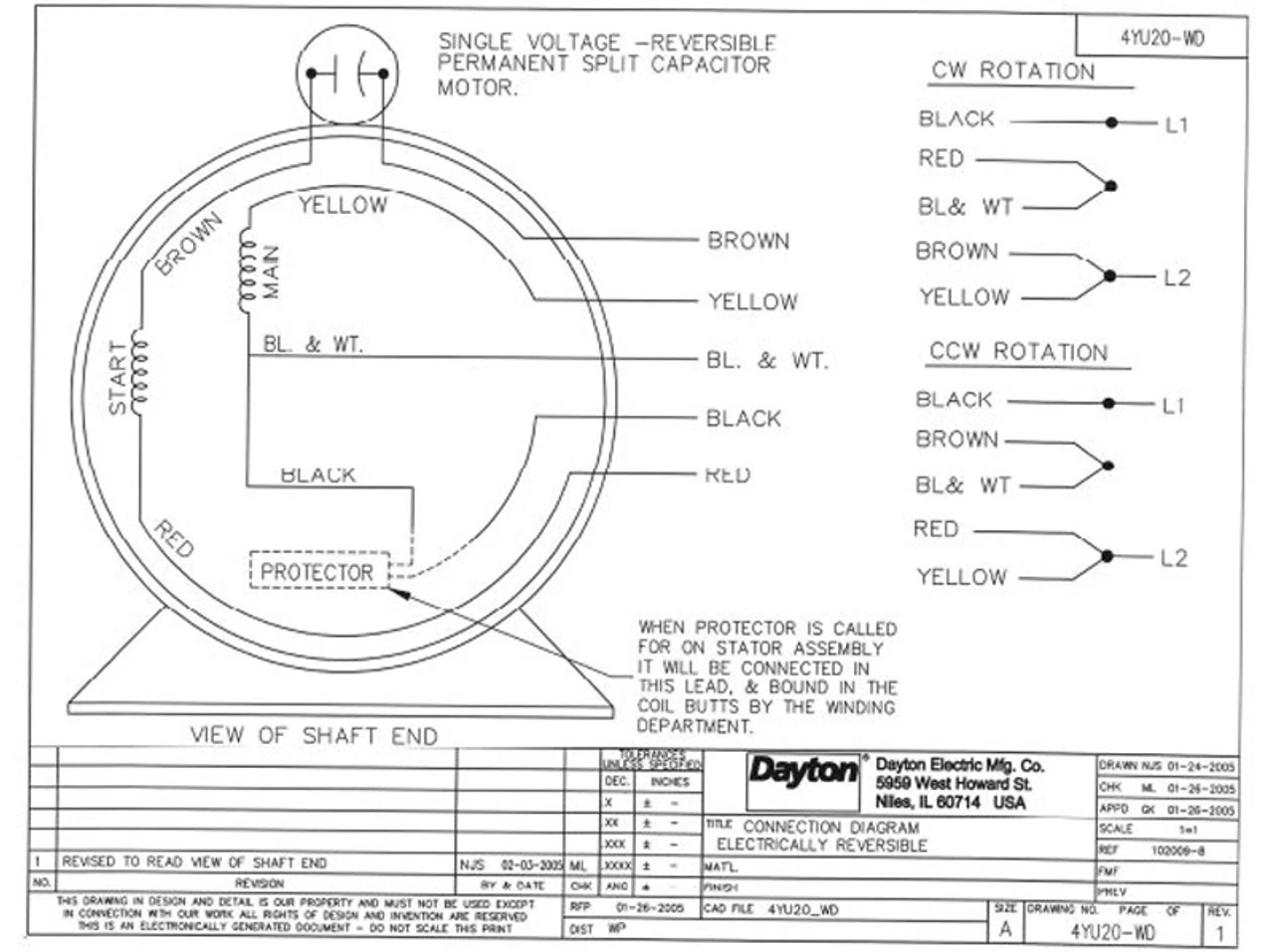 Continuous Duty, Open drip proof, Class B Insulation. Replacement Motor for 4HZ52, 4HZ54, 4YC73 Dayton Ventilators
