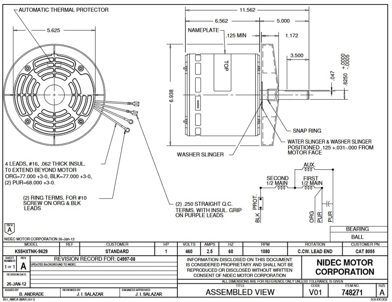 Permanent Split Capacitor Motor. Shaft up mount with shield. . Automatic Overload Protection. Continuous Duty; Open Enclosure; Class B Insulation; 40C Ambient Temperature. Application Lennox condenser fan motors. Suggested after market replacement for 88C7301, K55HXBSF9500