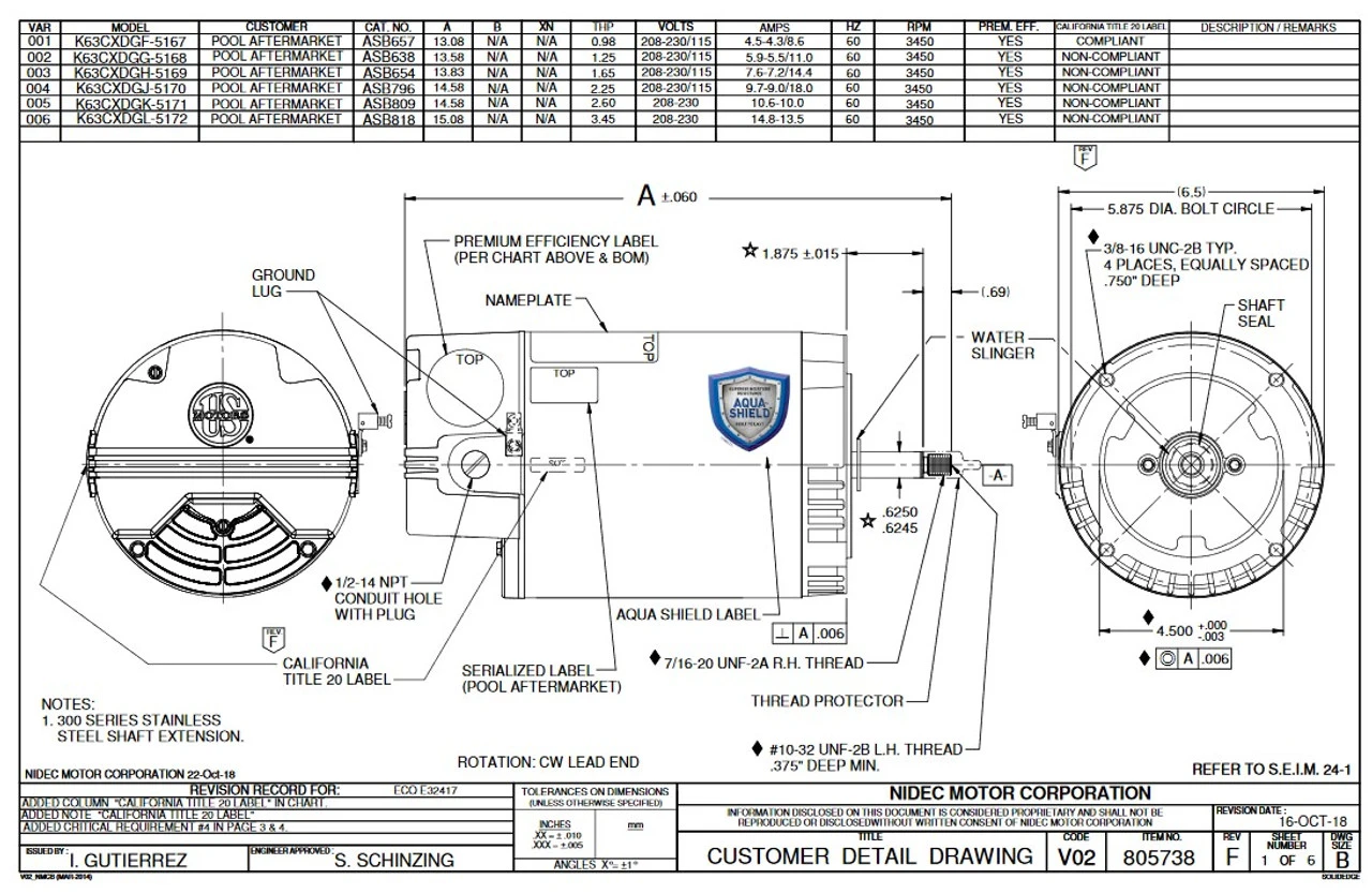 ATTENTION CALIFORNIA CUSTOMERS: This pump/motor does not comply with California’s Efficiency Regulations. These regulations can be found in Title 20, in the California Code of Regulations (CCR) sections 1601-1609. To meet California’s requirement, the pump/motor must be a 2 speed. So, it’s illegal to ship this pump/motor to California as it’s in violation of their regulations.