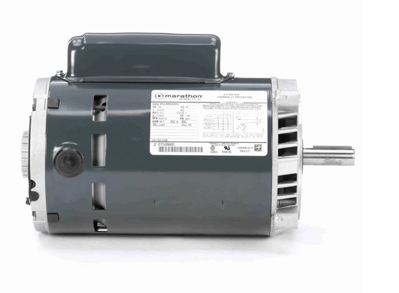 - NEMA 56C Frame, 5’8″ dia. by 1-5/8″ long keyed shaft, 60 Hz