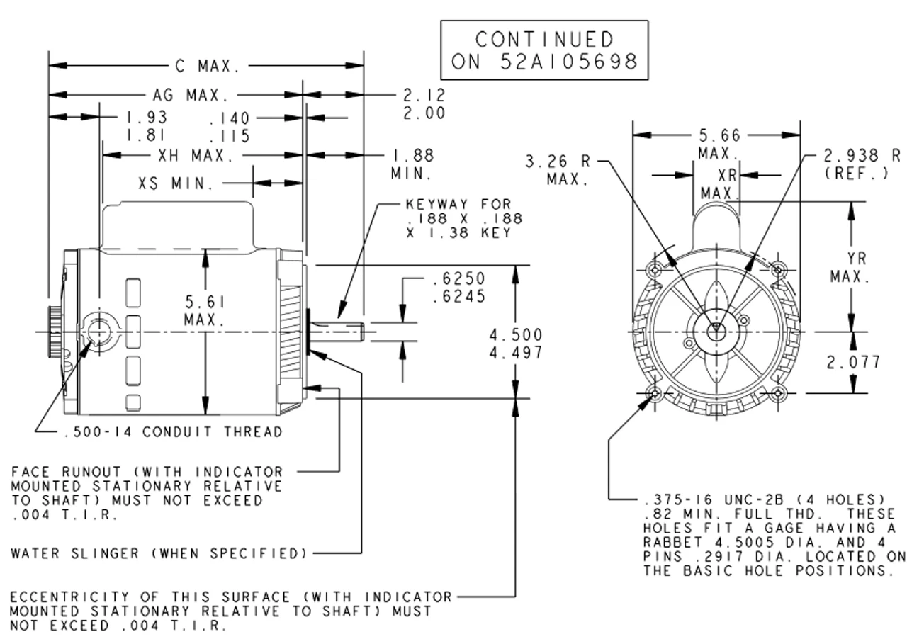 - NEMA 56C Frame, 5’8″ dia. by 1-5/8″ long keyed shaft, 60 Hz