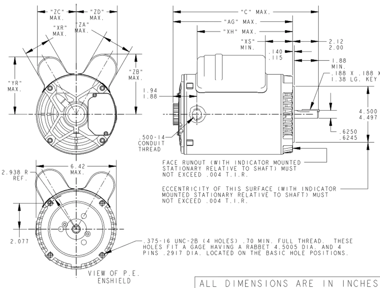 - NEMA 56C Frame, 5’8″ dia. by 1-5/8″ long keyed shaft, 60 Hz