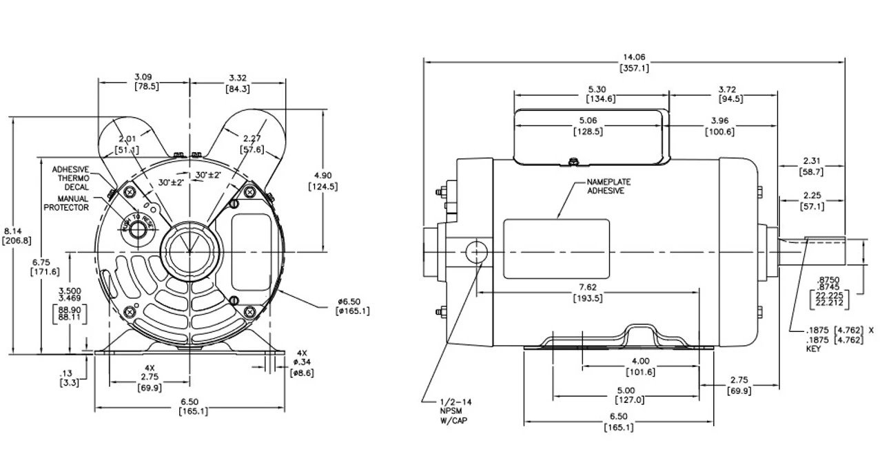 - NEMA 56 Frame, Shaft 7/8″ X 2-1/4 Diameter, 1 speed