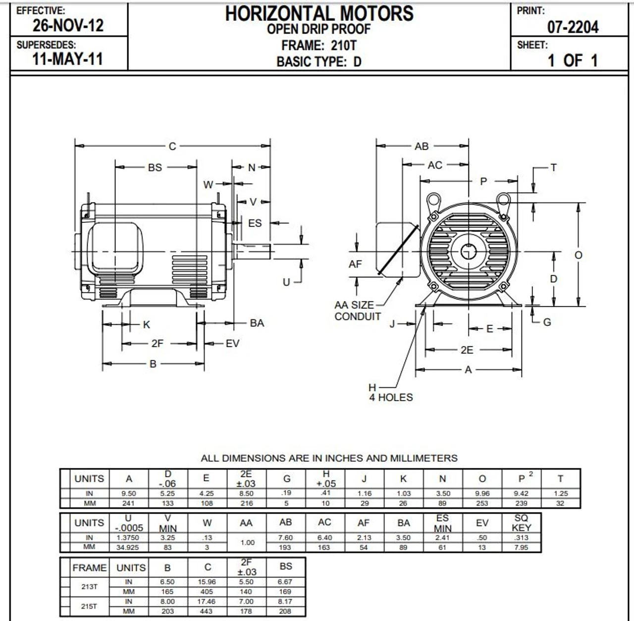 - NEMA 213T frame Keyed Shaft 1-3/8″ x 3 3/8″