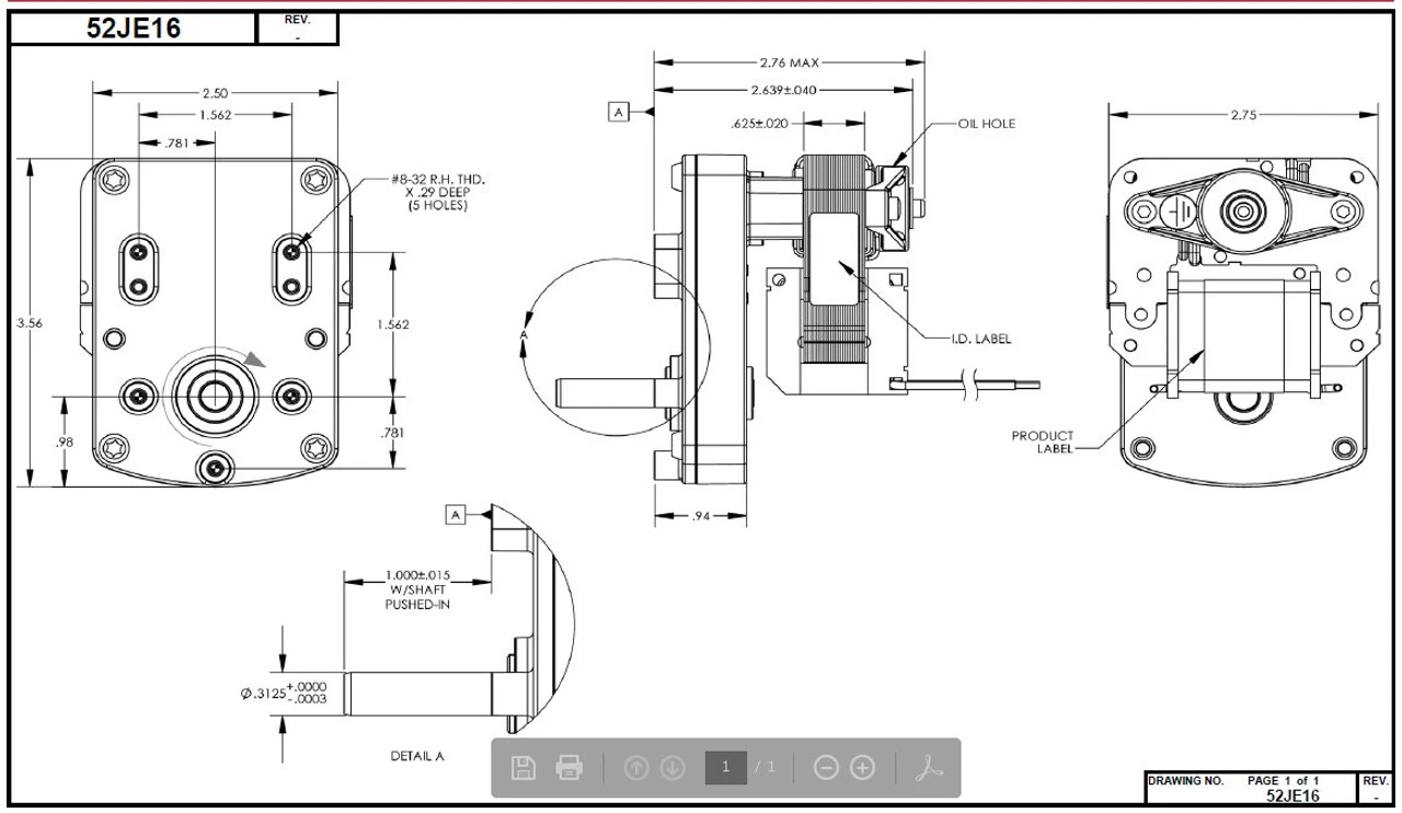 Dayton Model 52JE16 AC Parallel Shaft Gear Motor 3 RPM 1/300 Hp 230V 50hz -MotorHub Shop 52JE16 dim 33816.1486135235