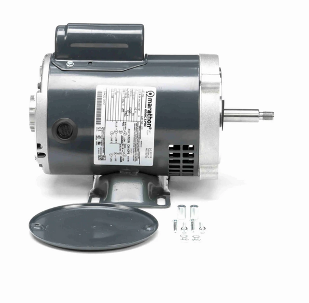 - NEMA 56J Frame, 5’8″ dia. by 1-5/8″ long threaded stainless steel shaft, 60 Hz
