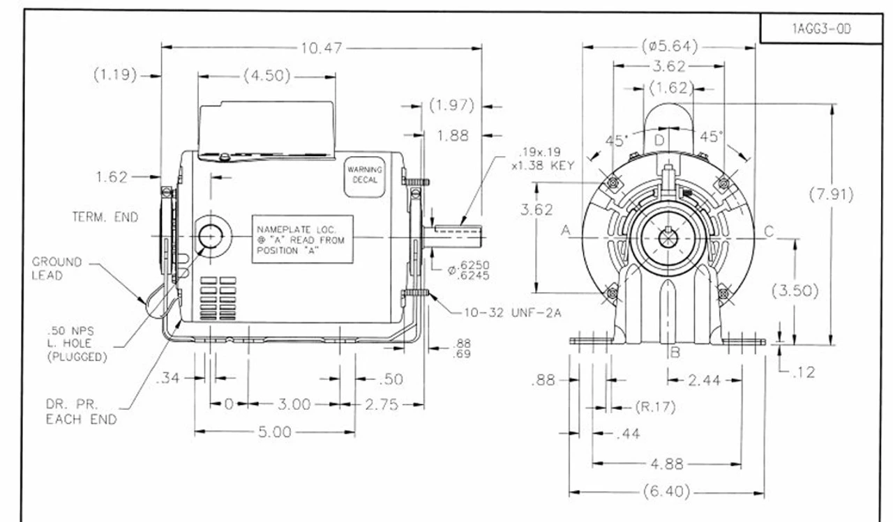 Model 1AGG3 Century 1/2 Hp Belt Drive Blower Cap Start Motor 1725 RPM 115/208-230V Dayton 1AGG3 -MotorHub Shop 1AGG3DIM 58802.1463164121