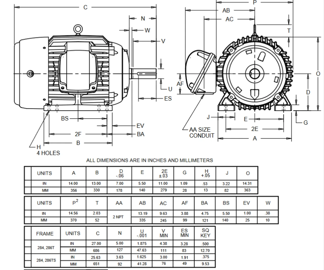 - NEMA 284T Cast Iron frame Keyed Shaft 1 7/8″ Diameter x 4 5/8″