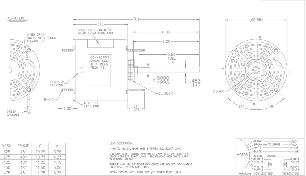 - NEMA 48Y Frame Keyed Shaft 1/2″ Diameter x 6″
